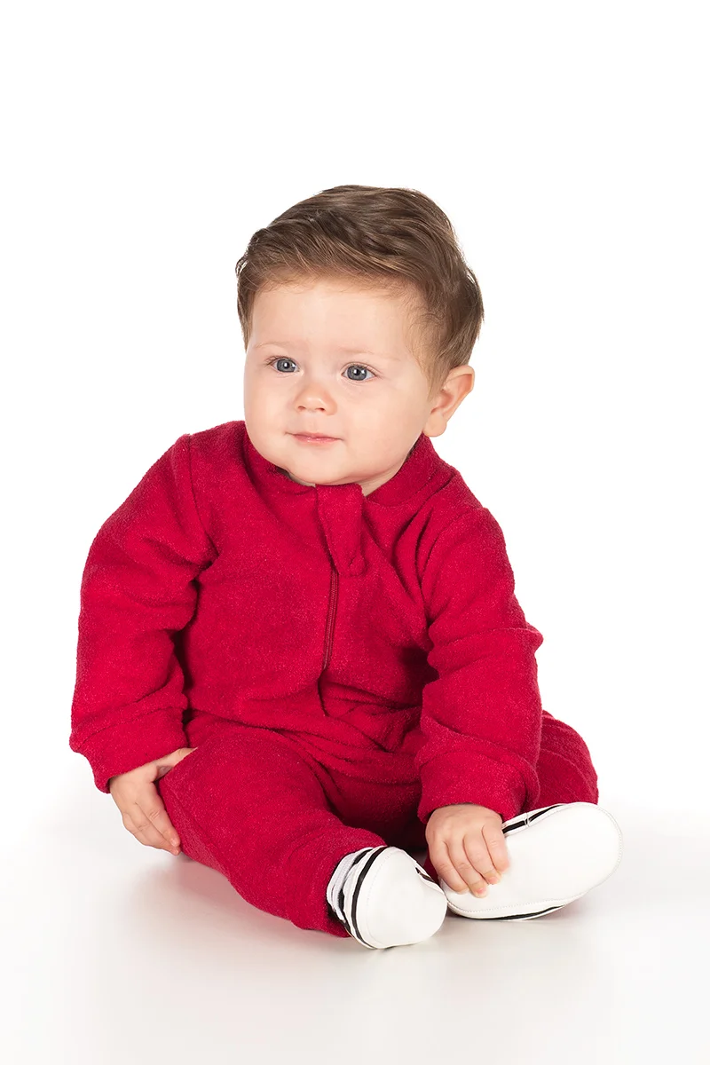 Macacão de bebê vermelho, uma cor vibrante e muito elegante!